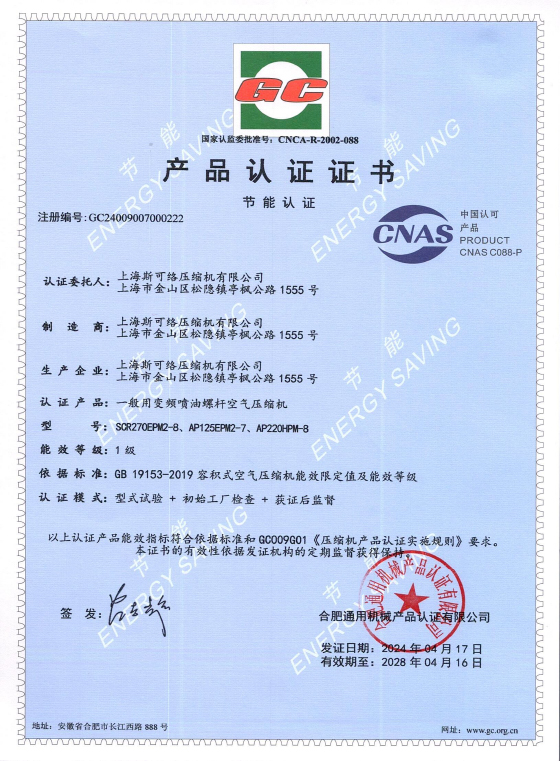 荣登“绿色低碳技术产品名单”|斯可络产品节能性再获权威认证斯可络产品节能性再获认可——经过严格审核,斯可络EPM2系列超能直列空压机上榜上海市2024年度绿色低碳技术产品名单! 能效水平先进 为更好服务国家碳达峰、碳中和战略,落实《上海市瞄准新赛道促进绿色低碳产业发展行动方案(2022 - 2025 年)》...